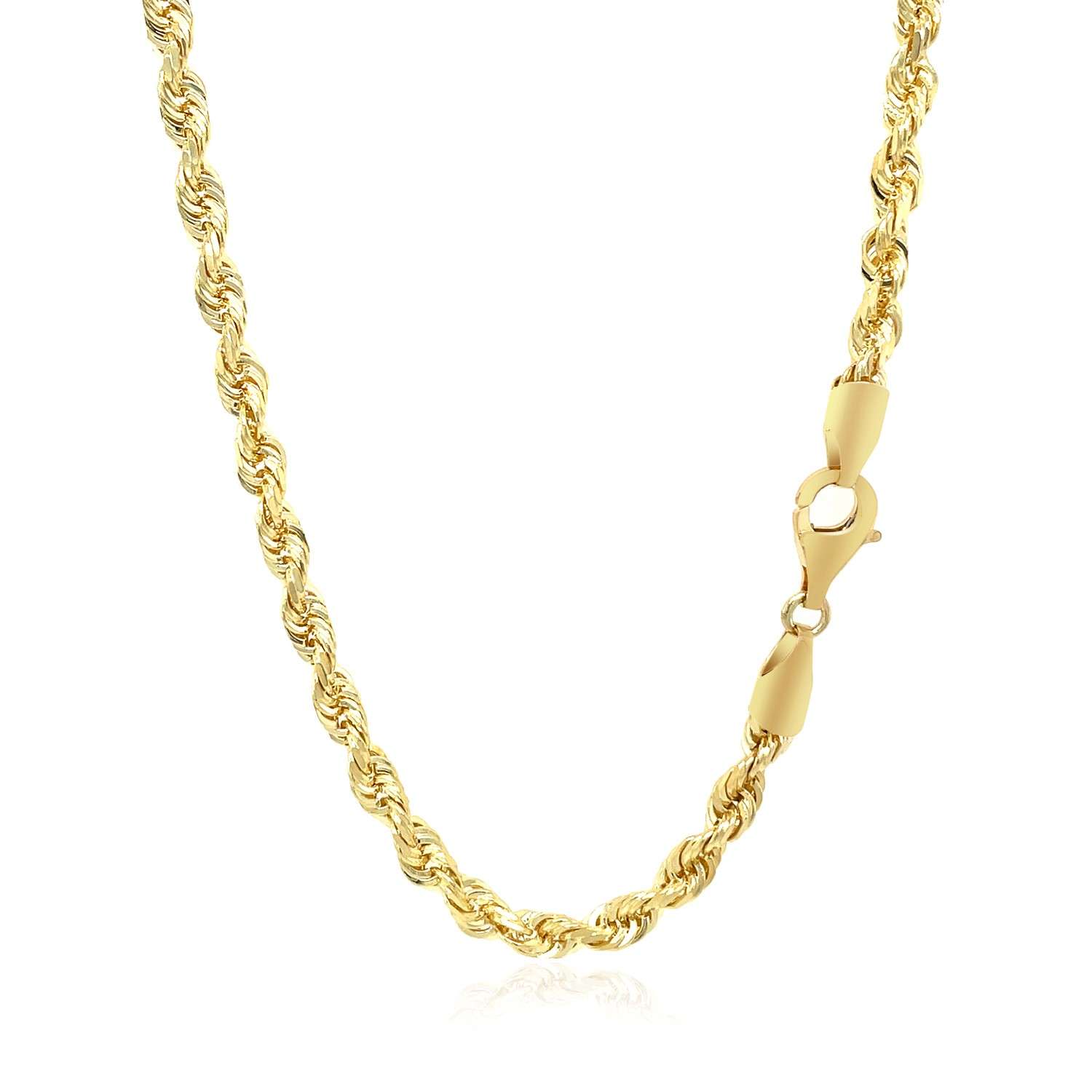 This solid diamond cut rope chain comes in 10k yellow gold and has a width of 4.0 millimeters.