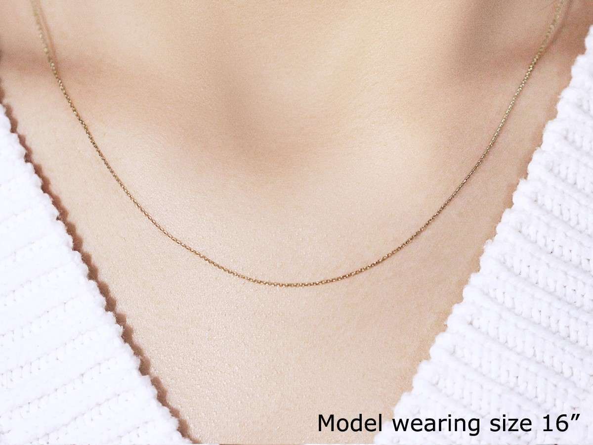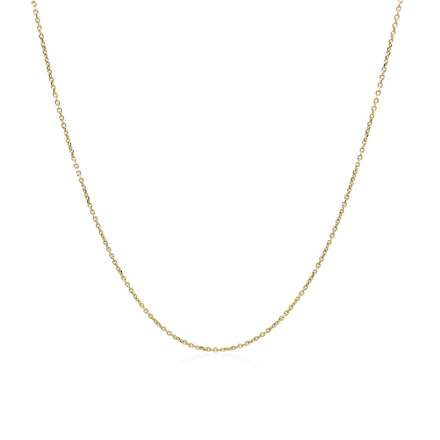 This cable link chain comes in 14k yellow gold and has a width of 0.50 millimeters.