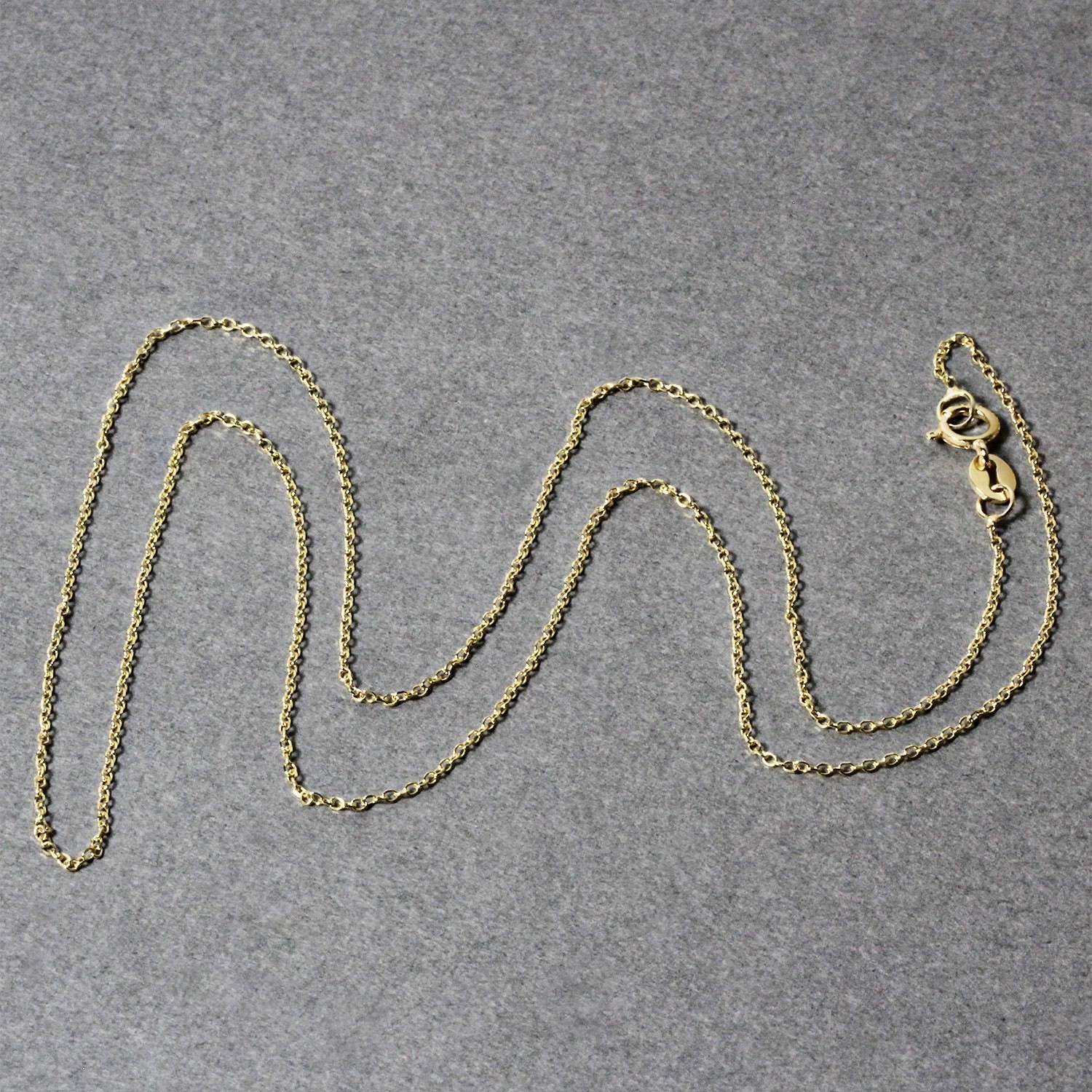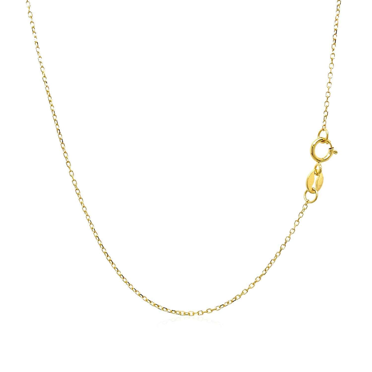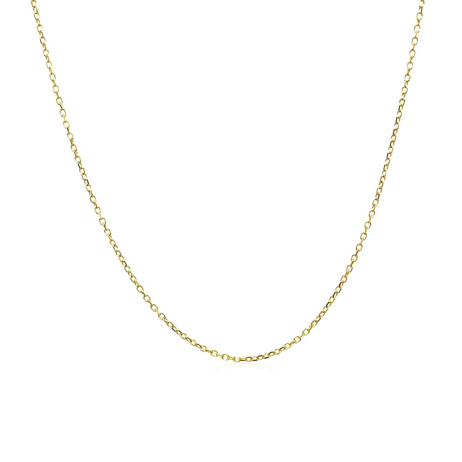 This diamond cut cable link chain comes in 14k yellow gold and has a width of 0.87 millimeters.