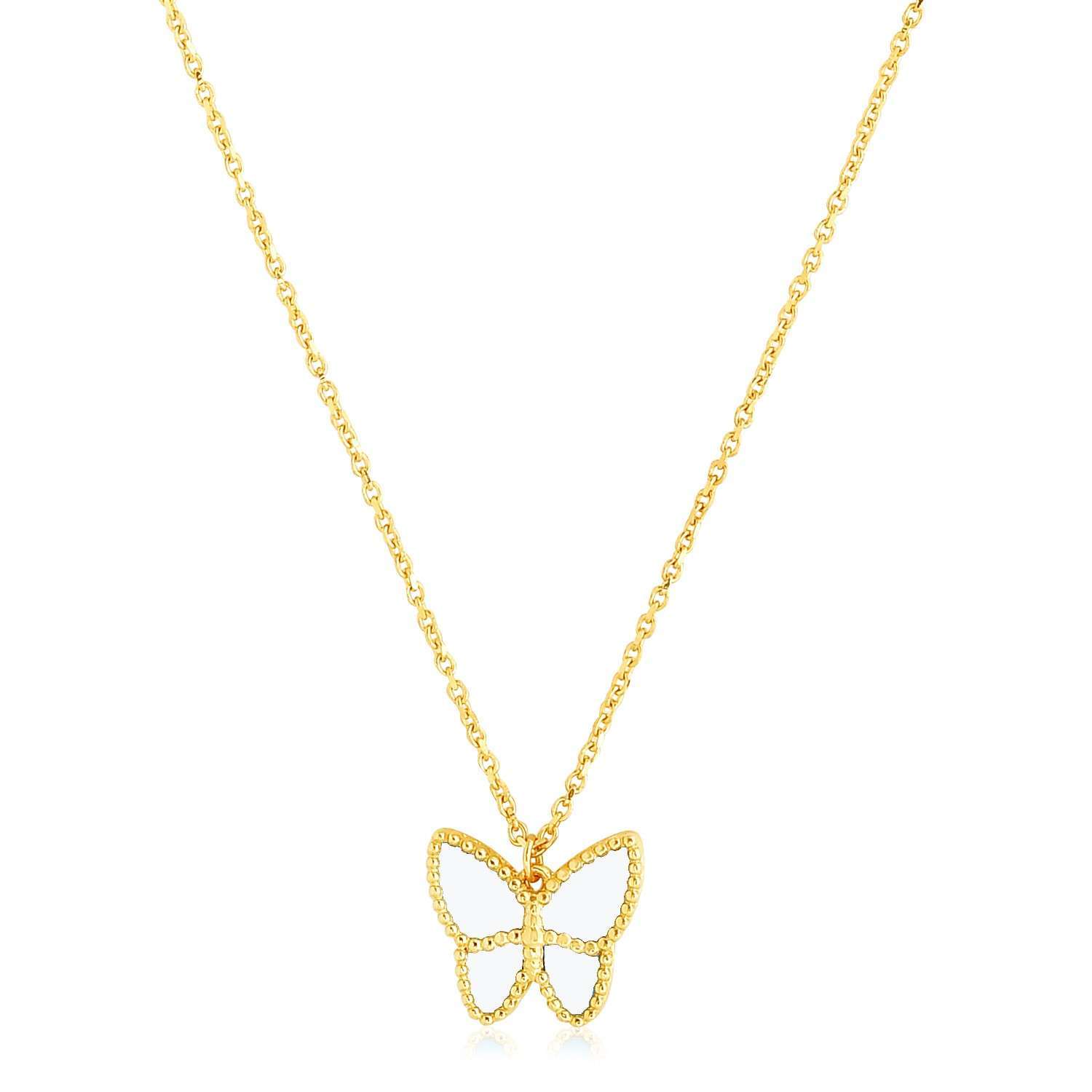 This Butterfly Pearl Paste necklace will be that sweet pop of color you’re looking for! A sweet dainty piece that you’ll need in your collection! Lightweight, high polish finish 14k yellow gold, moves freely along a cable chain & completed with a lobster clasp closure. Available in an 18 inches length.