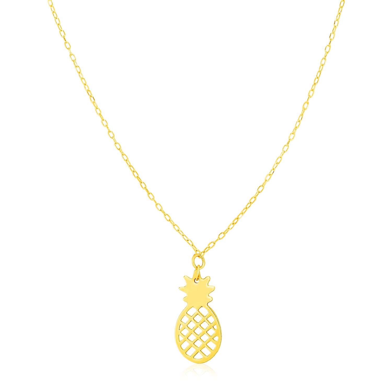 This sweet and stunning necklace features a scrumptious 14K yellow gold pineapple suspended from fine links of chain. Necklace is 18 inches long and 0.8mm wide. Pineapple pendant measures 11mm.