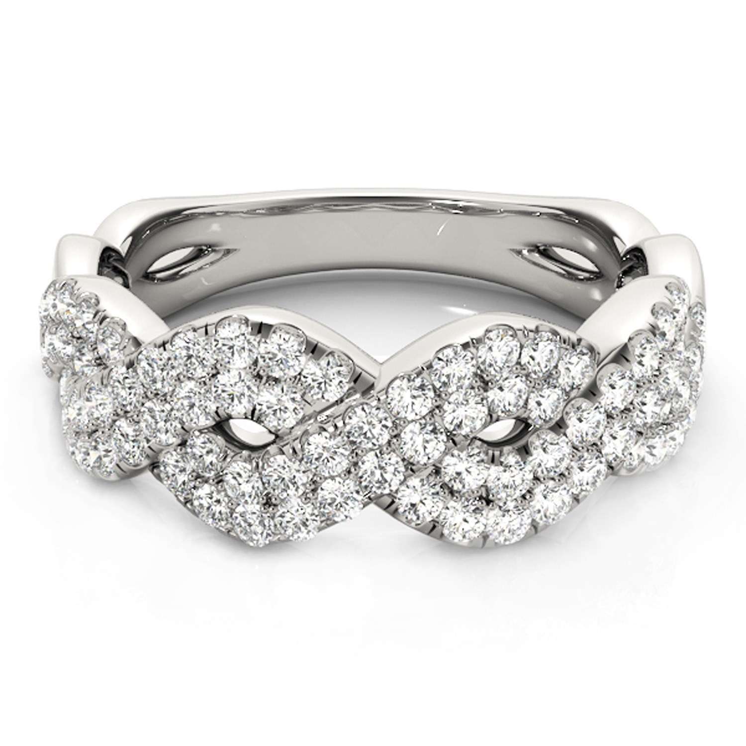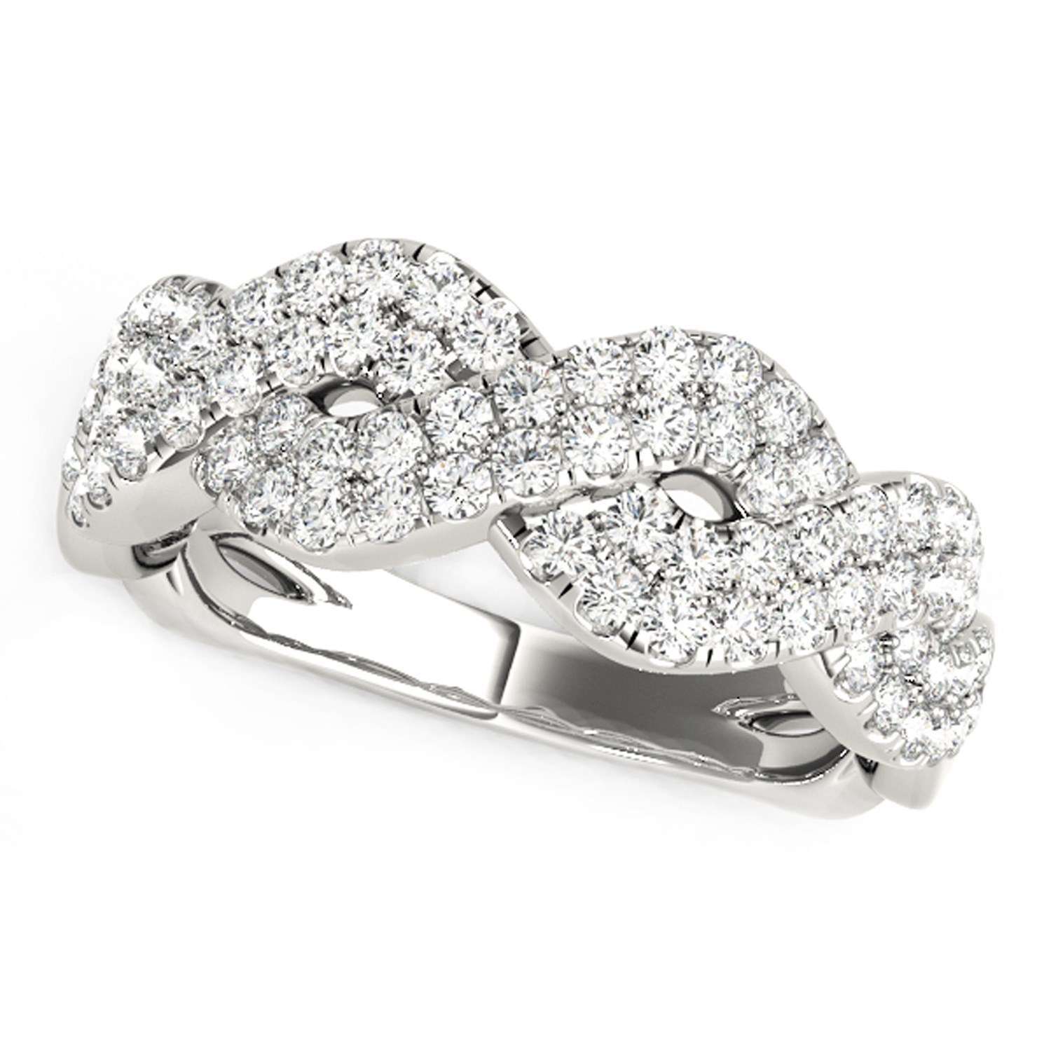 This unique ring makes a statement with two wide wavelike paths of diamonds set in 14k white gold.