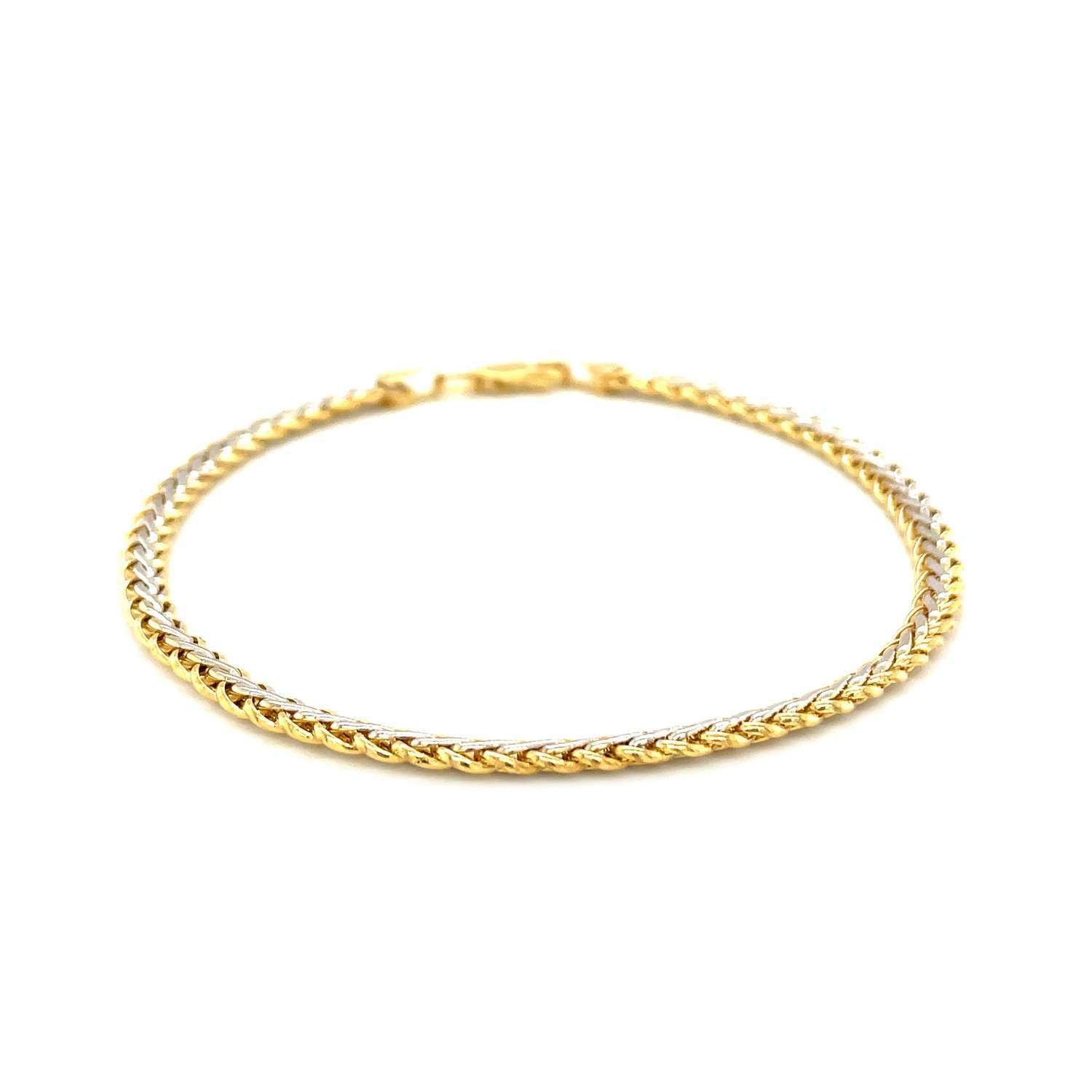 Two-Toned Fine Wheat Chain Bracelet in 10k Yellow and White Gold (3.00 mm)